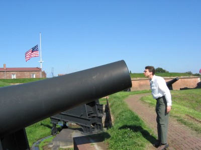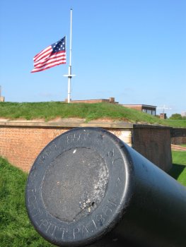 Fort McHenry is most famous as the site of the battle where Francis Scott Key wrote The Star-Spangled Banner. It remained a fort through the Civil War, and a military property until after WWI, so over time it became quite different from how it looked in Key's time. It is now largely restored to that layout.