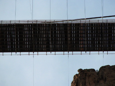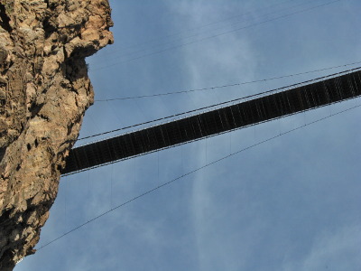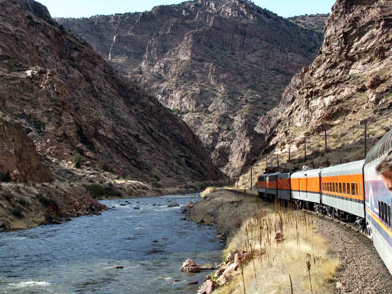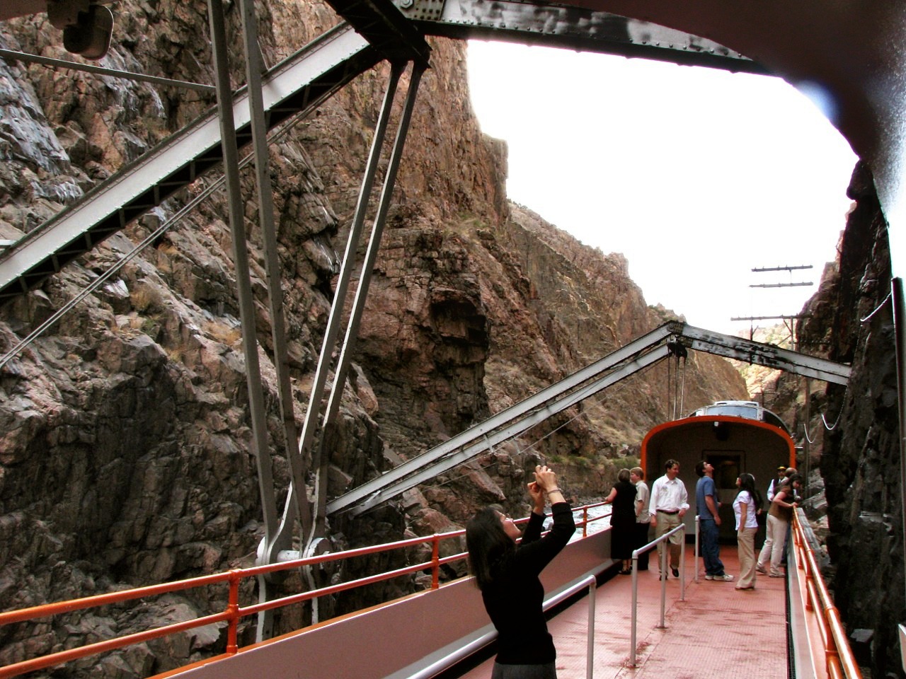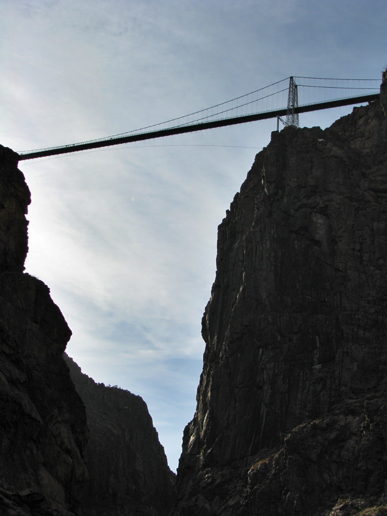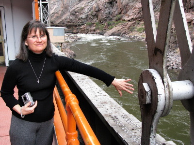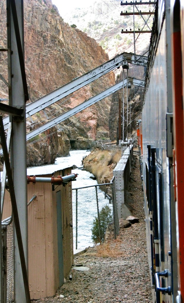 The Royal Gorge is spanned by a bridge more than 1000 feet above the canyon floor, and there is also a railroad that travels along the river. We went with the train because we like trains, and it's not as high.