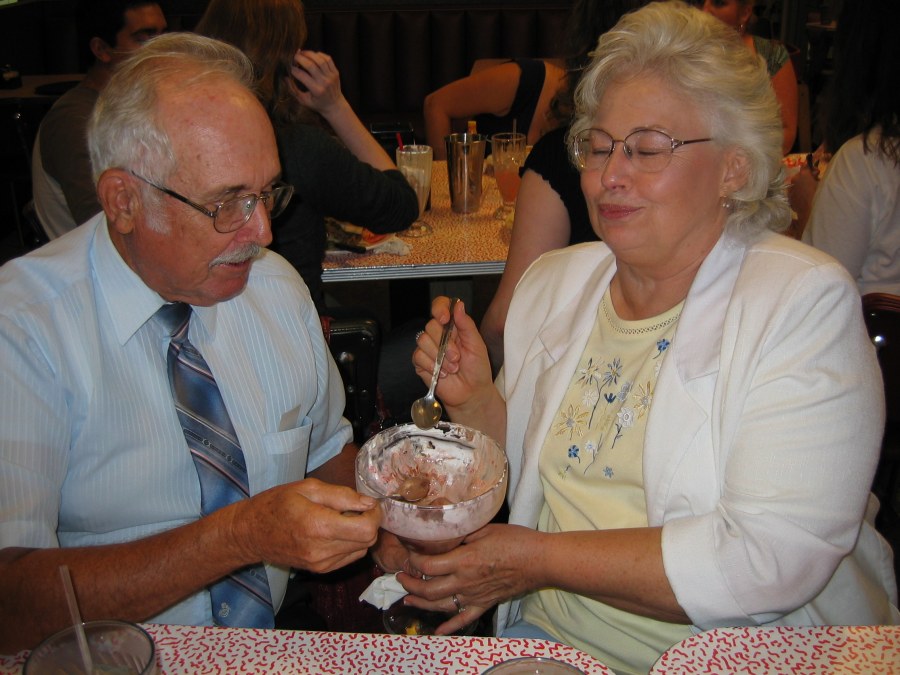 After one show, Shelly, my parents, and I went to 59 Diner with some of the cast. My parents shared a banana split. Angela Smoke (Mrs. Shinn) was particularly impressed with their dedication to finishing it.